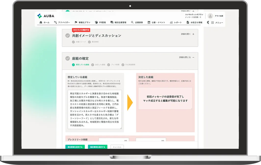 共創事業の計画書を自動生成。