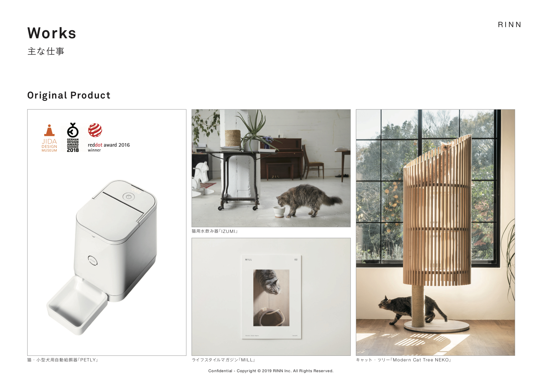 猫目線を第一に考えられた、洗練されたデザインは世界中の著名メディアから高い評価を受け、2016年に世界最高峰のデザイン賞レッド・ドット・デザイン賞を受賞。業界の垣根を超えて、異業種とのコラボレーション実績あり。直近では、カリモク家具とコラボレーションした猫用木製家具ブランド「KARIMOKU CAT」をリリース。RINNはクリエティブ・ディレクションとデザインパートナーとして役割を担う。