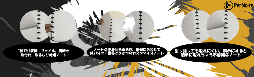ページを斜めにするだけで、取り付け取り外しができるノート(PerNo-te)の開発