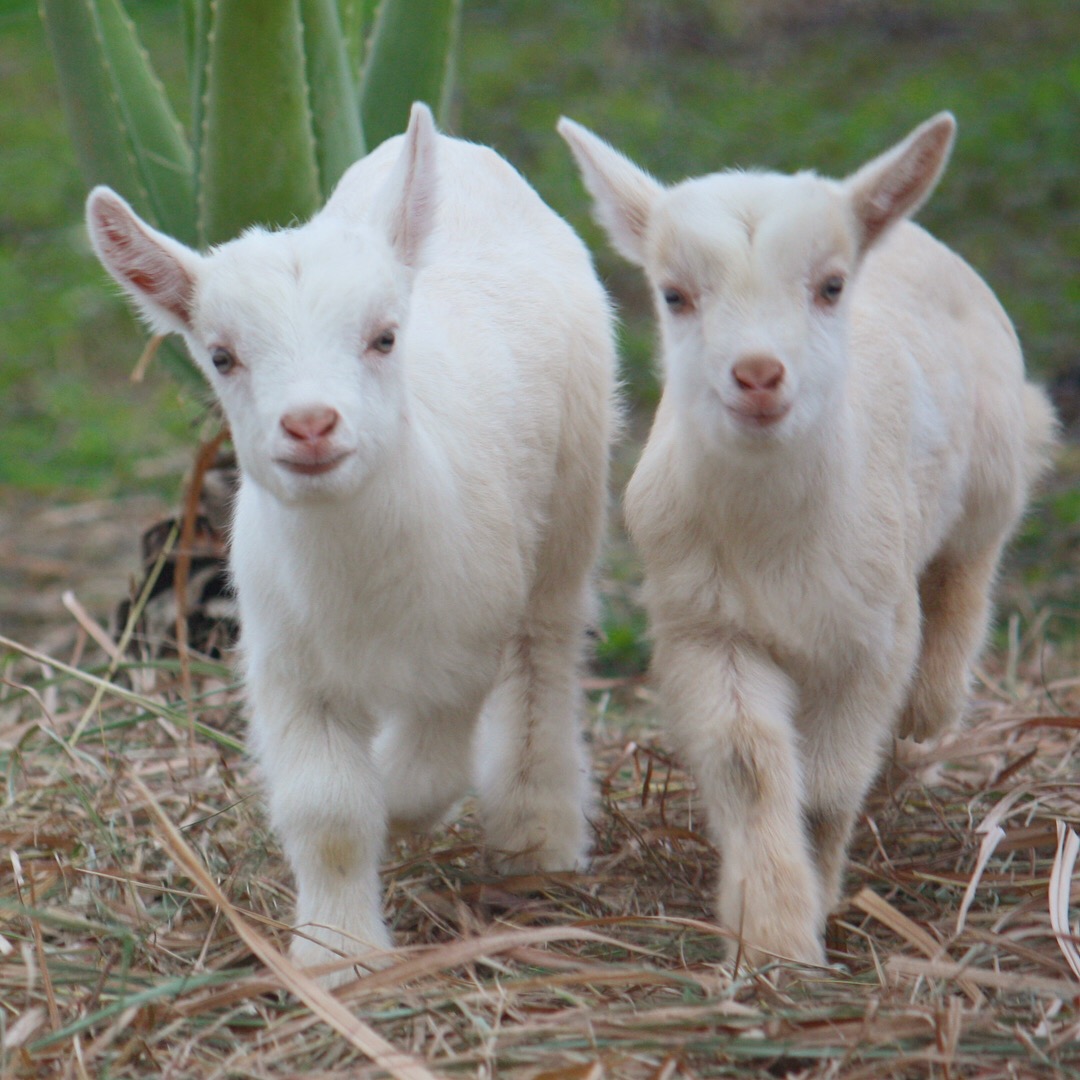 アロエを有機栽培するため、雑草管理スタッフとしてヤギを放牧。