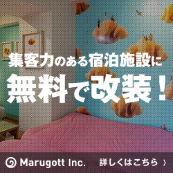 インバウンド、観光のベンチャー。 宿泊施設の内装を漫画やアニメといった知的財産を用いて改装します。改装費用は無料で、レベニューシェアモデルで提供。