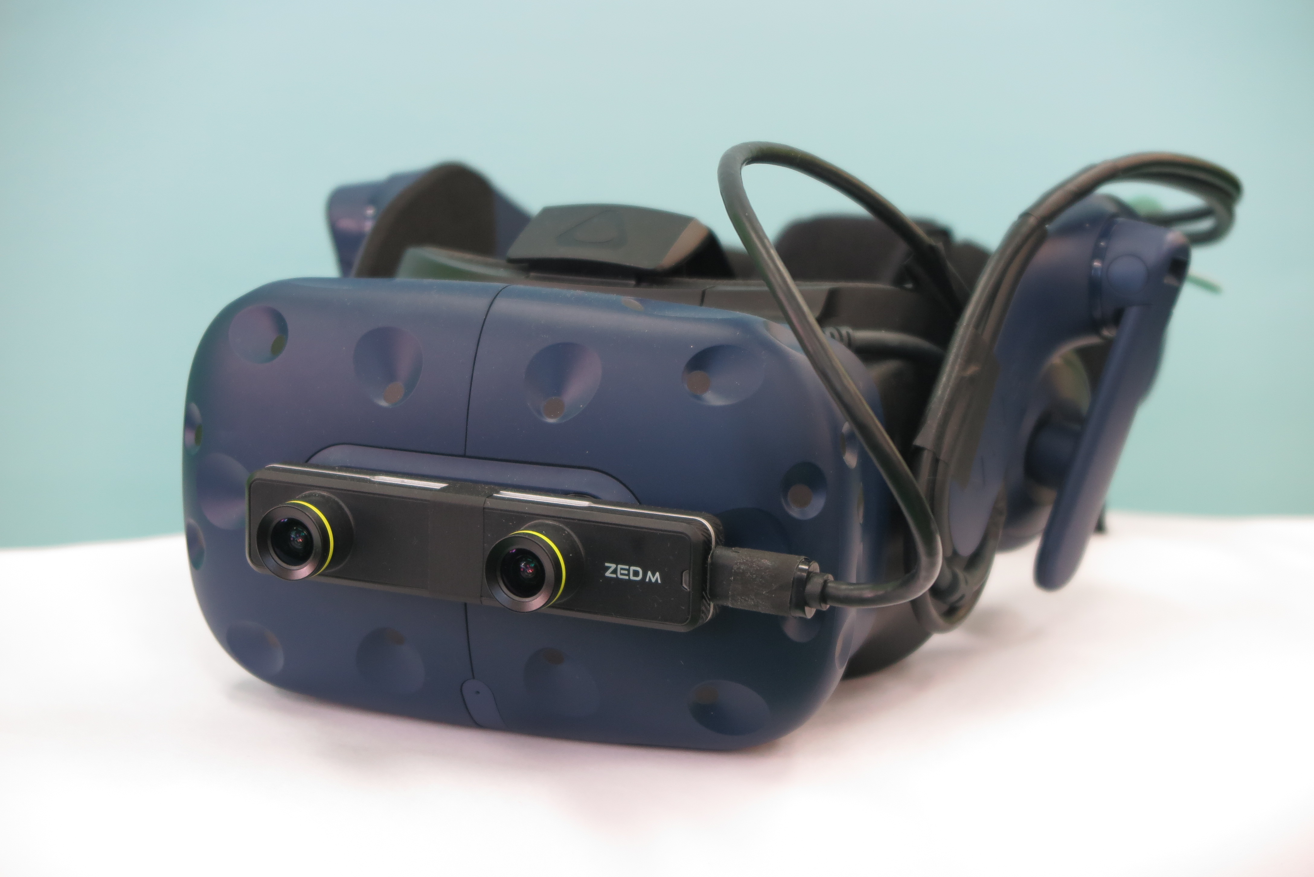自分の手足や周辺の環境(机や椅子など)を視認することにより、仮想空間に自分自身がいる感覚を実現している