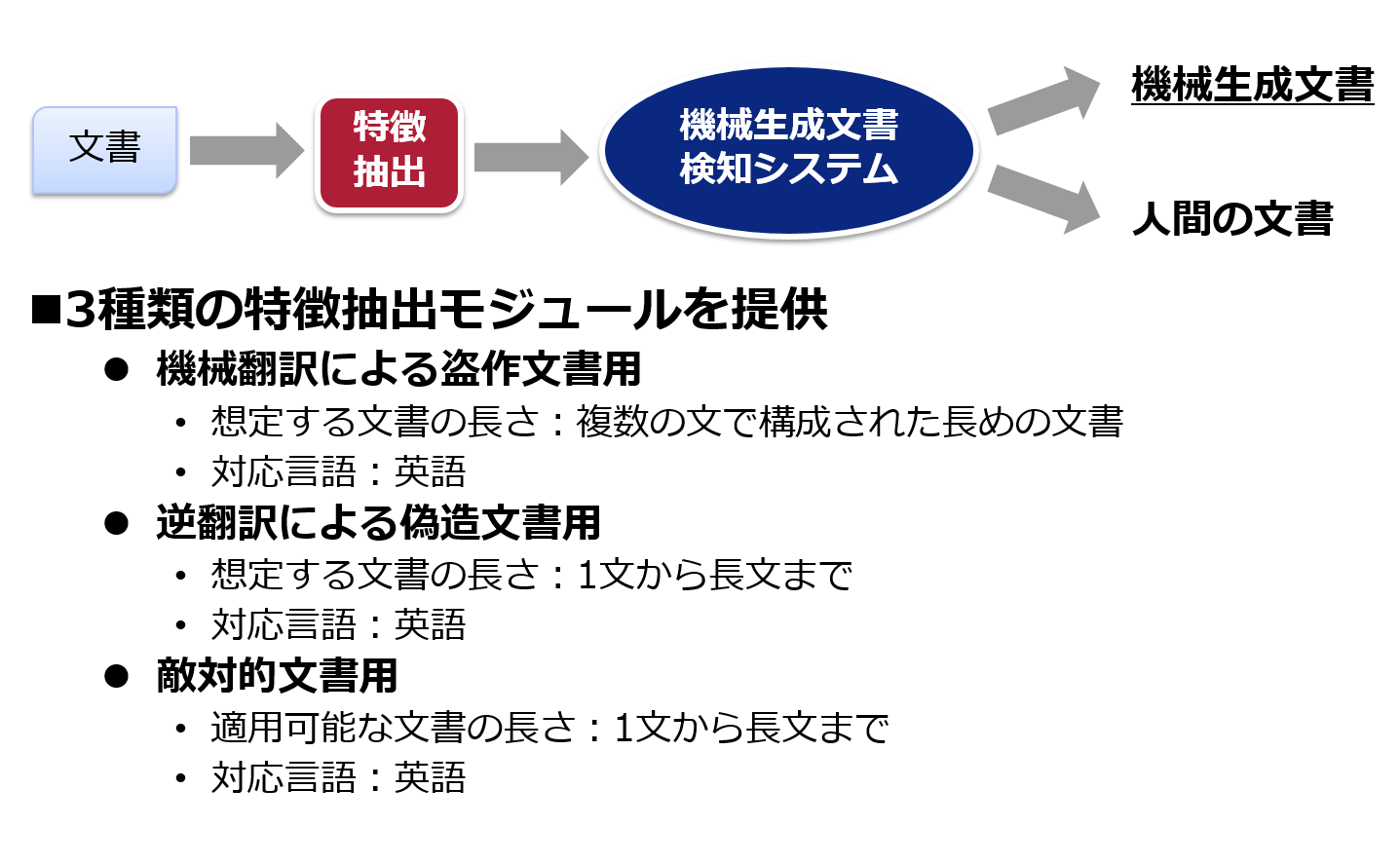 (英語対応、機械翻訳による盗作文書用・逆翻訳による偽造文書用・敵対的文書用)