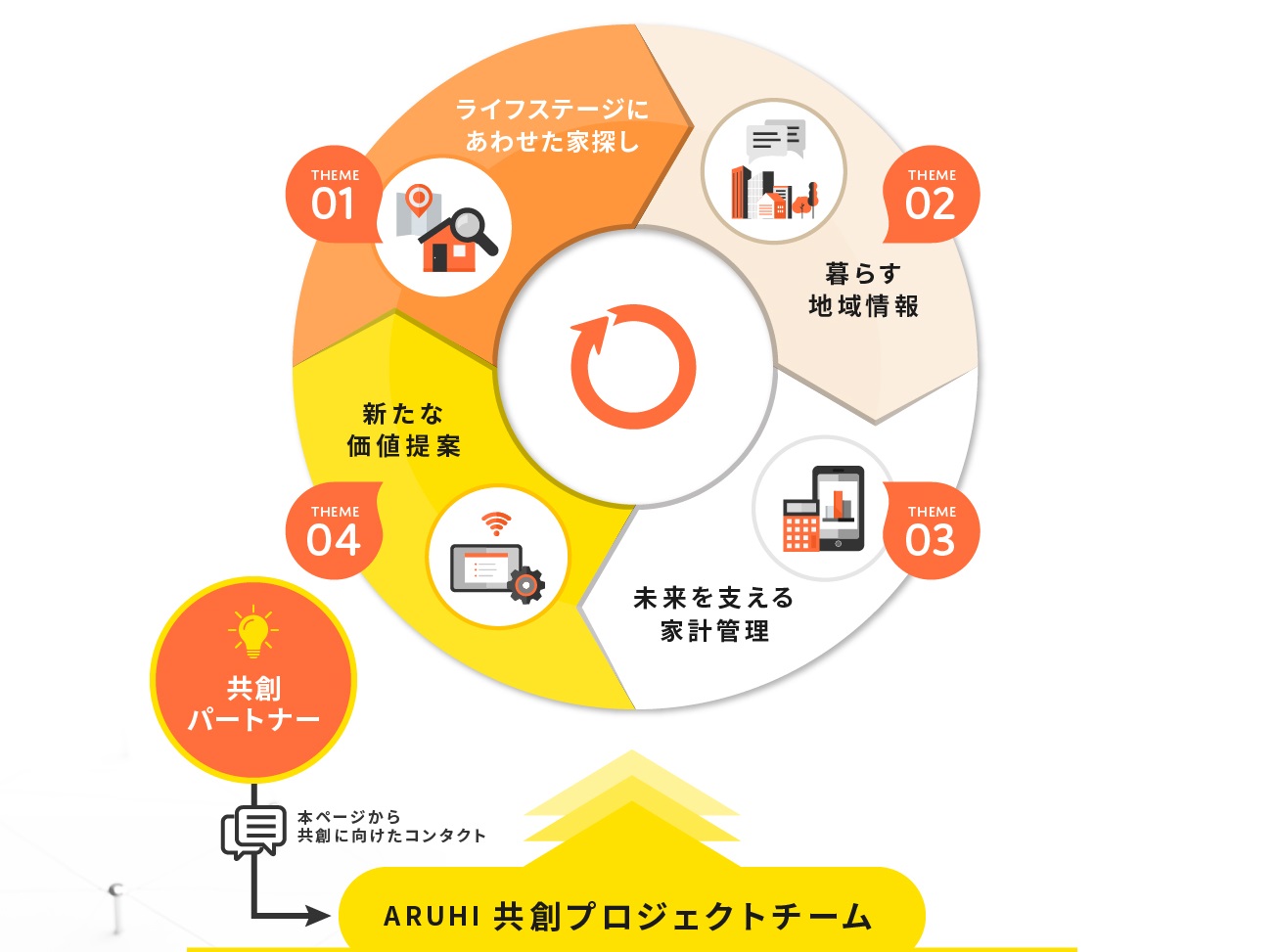 『家探しから購入、暮らす地域や住んだその後の生活までをトータルで支えるプラットフォーム』を掲げ、以下4つのテーマにおいて、パートナー企業様との共創を目指します。