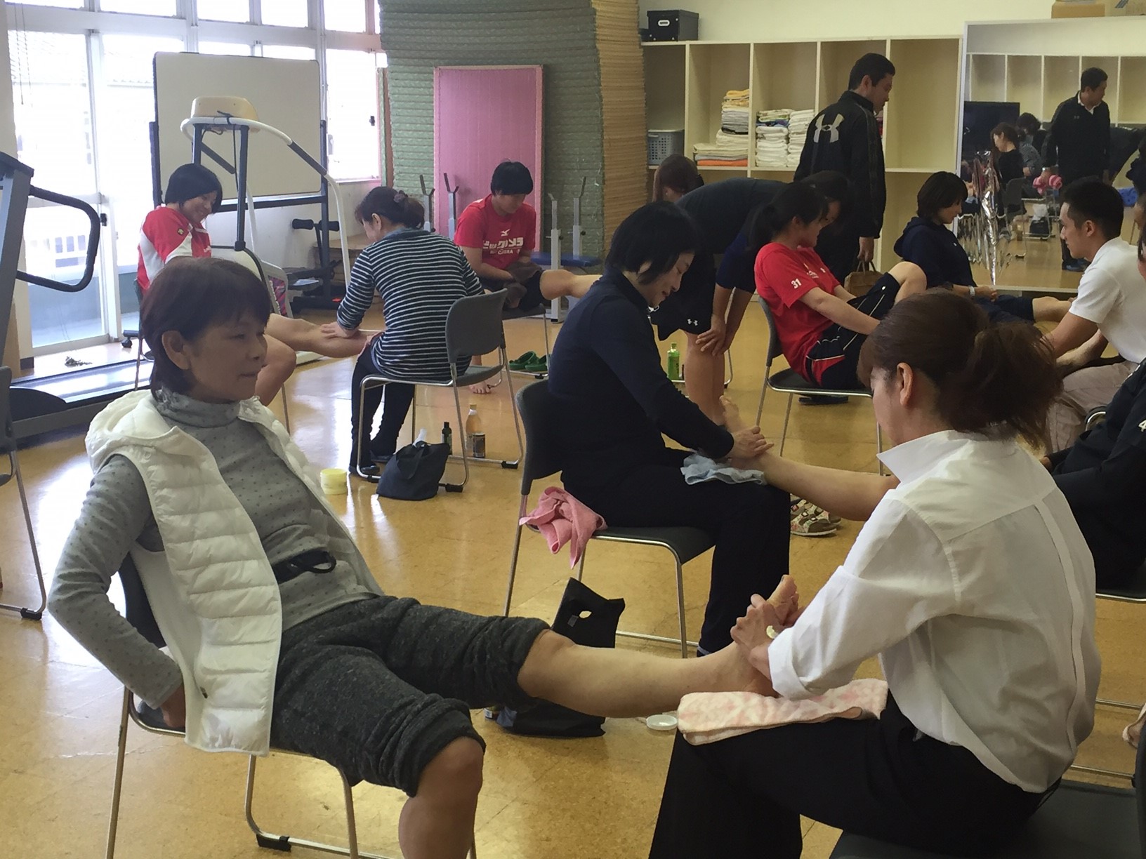フットリーディングという足裏から身体の状態を読み取る技術でカウンセリングを行う。