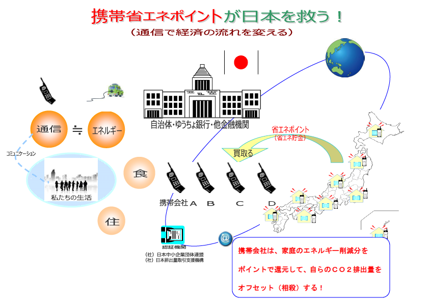 ・ファミリーエスコ事業で100万人の省エネ診断士養成・携帯省エネ診断システムの開発・省エネナビCO2の開発と障がい者の雇用システムを自治体に提供する。