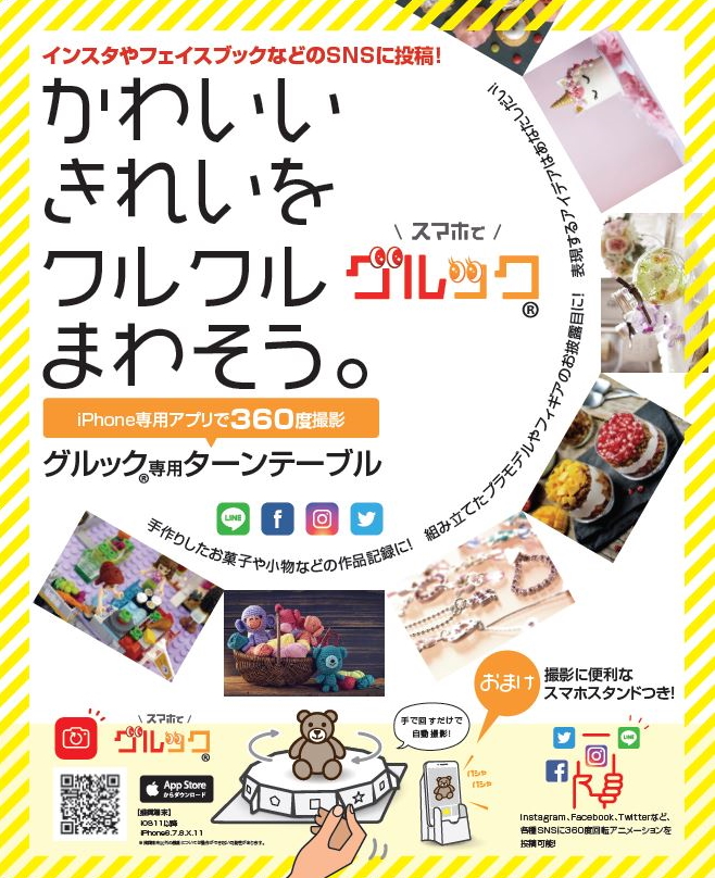 スマホで360度撮影可能とした「スマホでグルック????」を用いて、イベント向け、フィギア小物向け、を対象に したコンテンツを中心に事業を行っております。