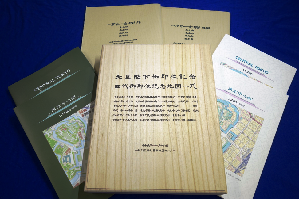 このたび天皇陛下の御即位を記念して、大正・昭和・平成・令和の4時代御即位記念地図一式を発売中です(限定1,000セット桐箱入り)。その他、住宅地図など、皆様が必要とする様々な地図をお安く提供します。