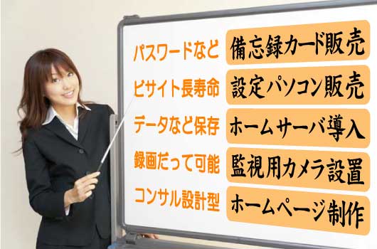 個人指導と実践講座を基本としたパソコン教室、情報機器関連商品の販売。更に企業向けホームページ制作およびカタログなど印刷物データ制作に社員教育も承ります