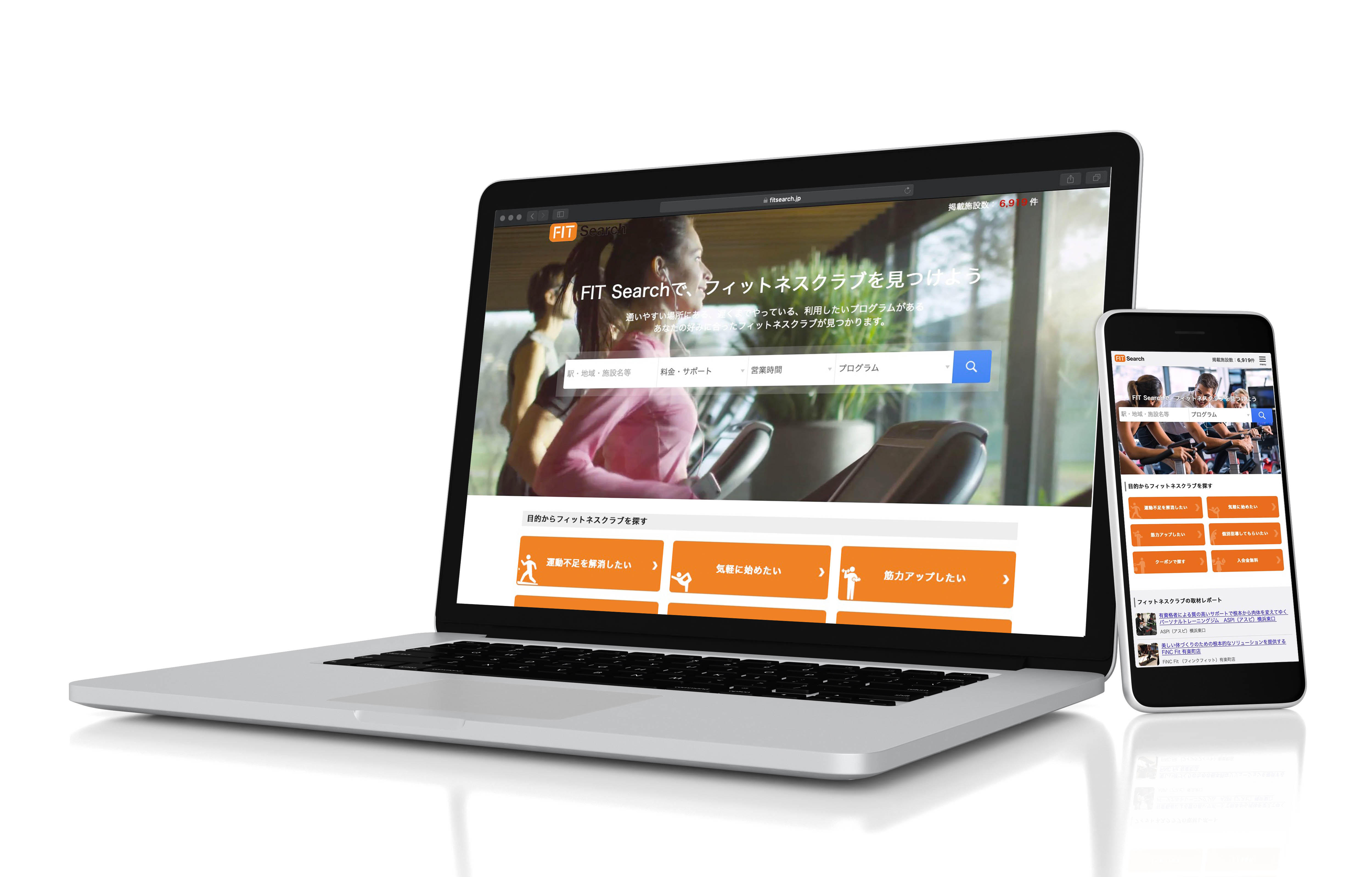 また、近年は新たな事業領域を広げ、フィットネス事業領域においてフィットネス施設の紹介サイト「FIT Search」を運営しており、業界最大級のフィットネスポータルサイトとして運営しております。