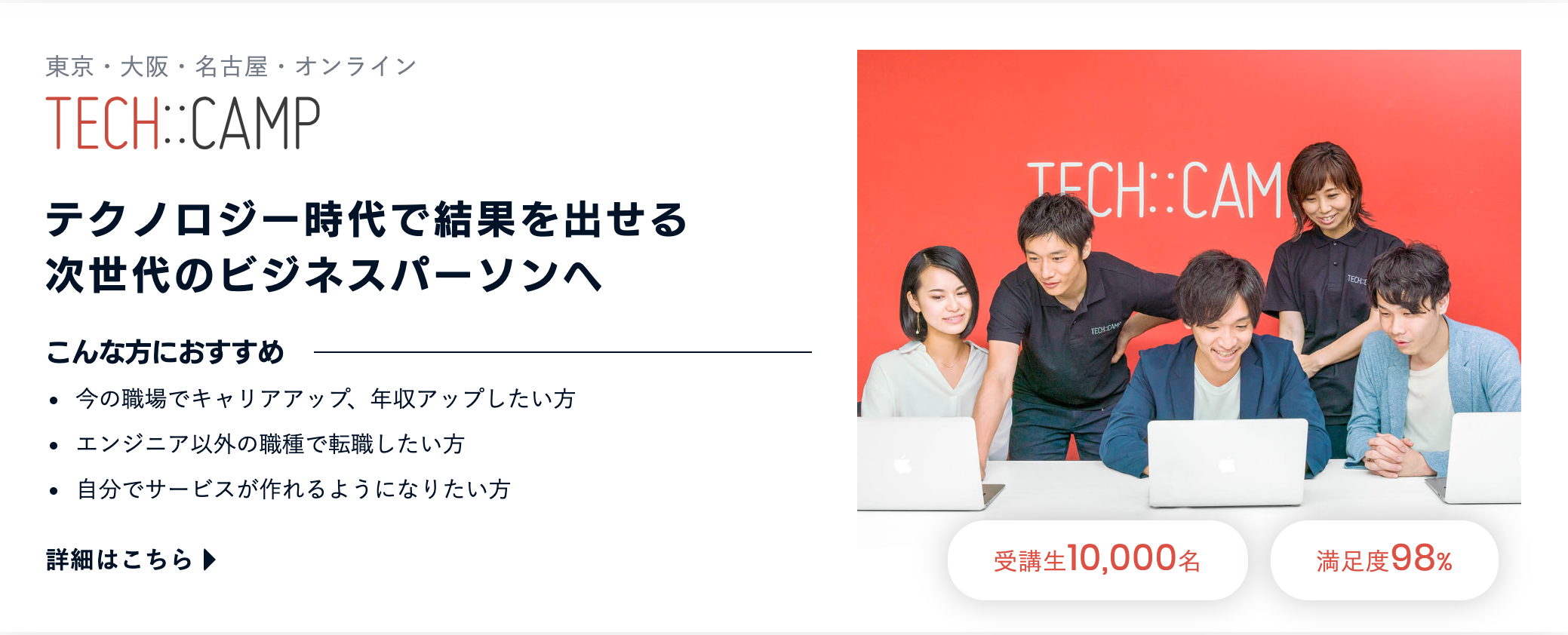 - テクノロジースクール【TECH::CAMP】・エンジニア養成スクール【TECH::EXPERT】の運営