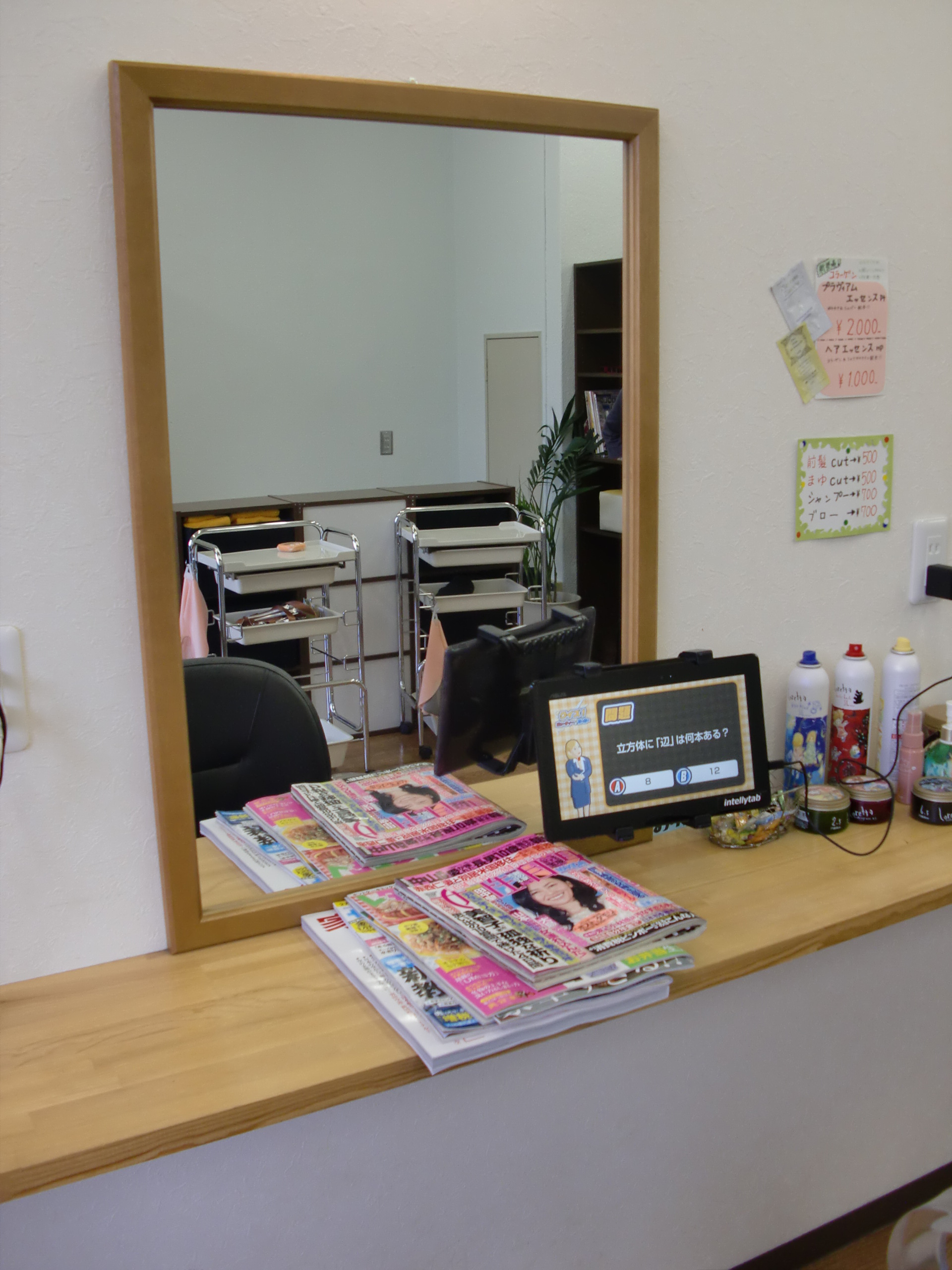 このシステムは、理美容室の鏡周辺にタブレット端末を置き、各種広告を流すものです。