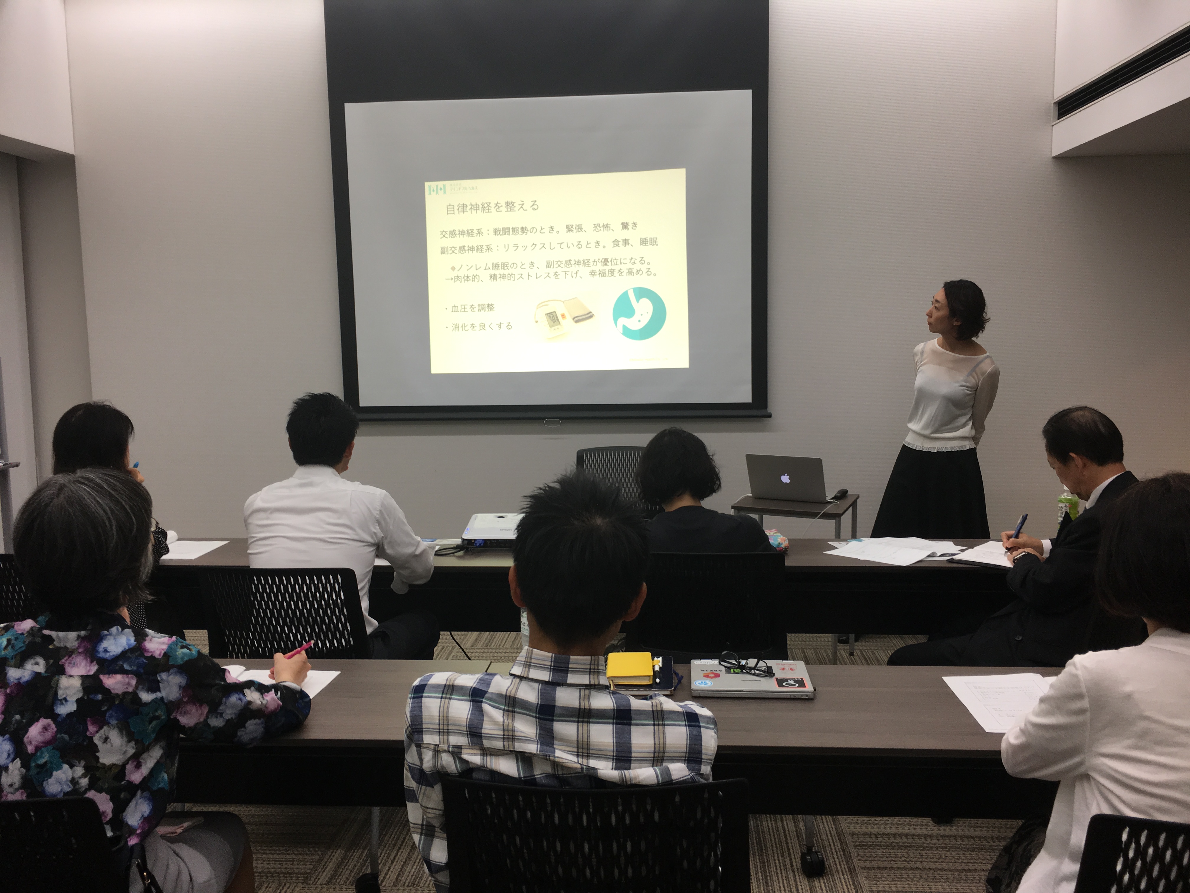 弊社ではマインドフルネスをはじめとした健康作りの7つの柱に基づき企業様ごとに適した研修プログラムをご用意し、幹部社員様をはじめ社員の皆様の心と身体の両方の健康作りのお手伝いをしております。 」