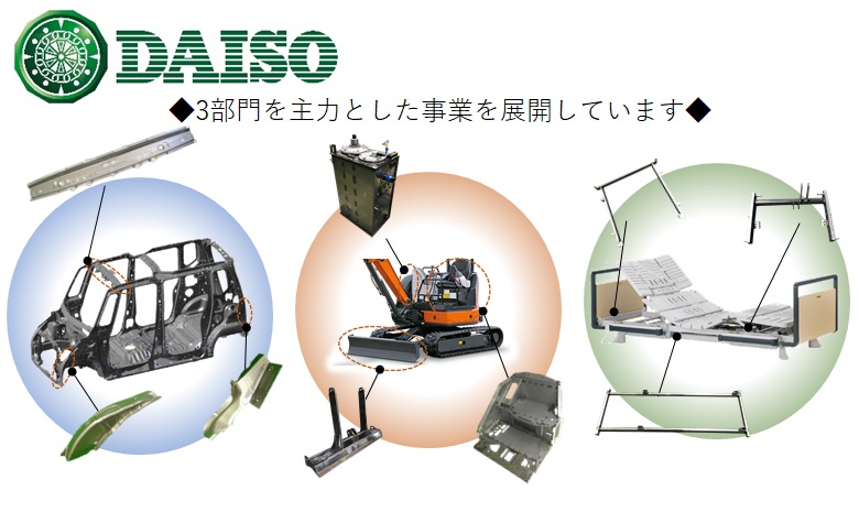 - 3分野の板金部品事業を展開しており、『貪欲に時には豪快に』をもとに、板金部品事業の新たな価値と創造を生み出していきます
