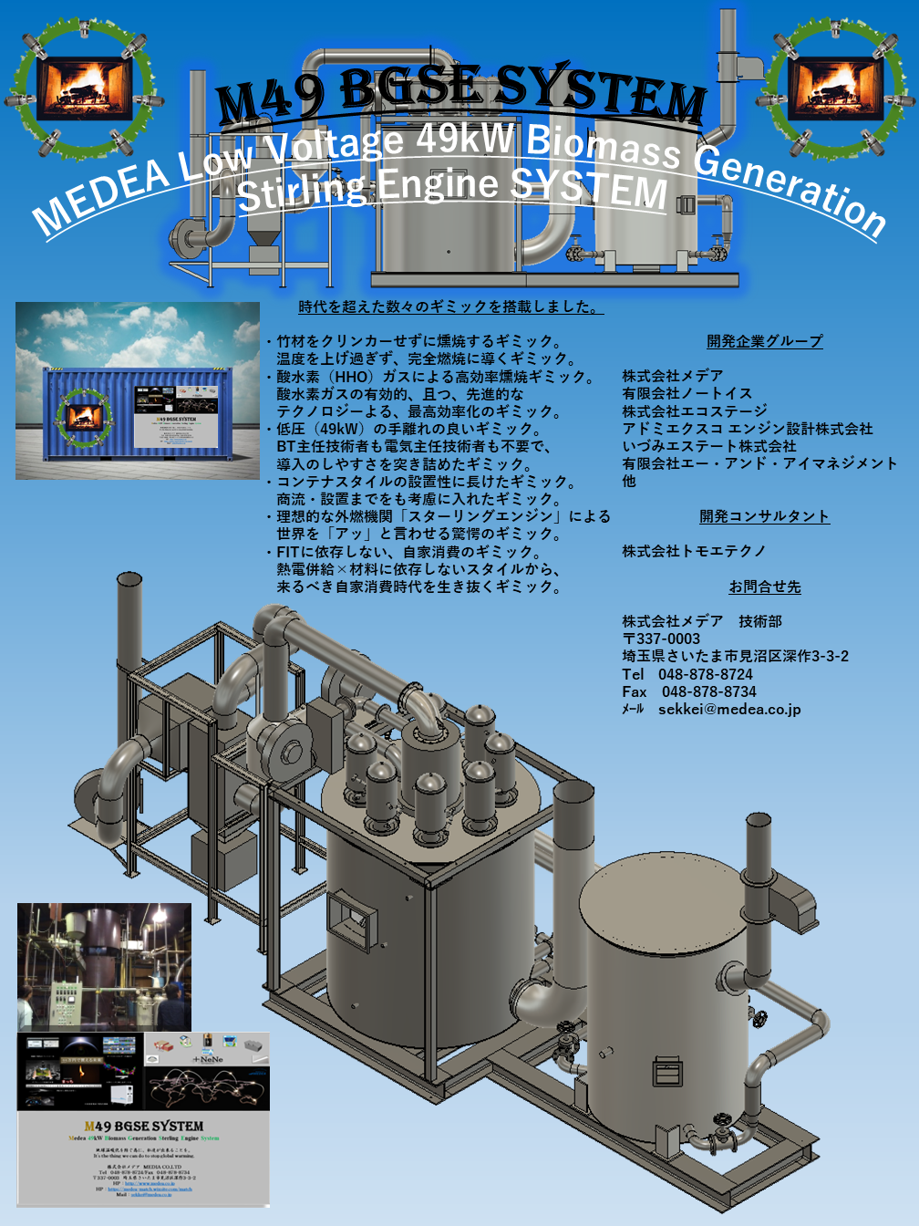 世界初の低圧バイオマス × スターリングエンジンシステム。