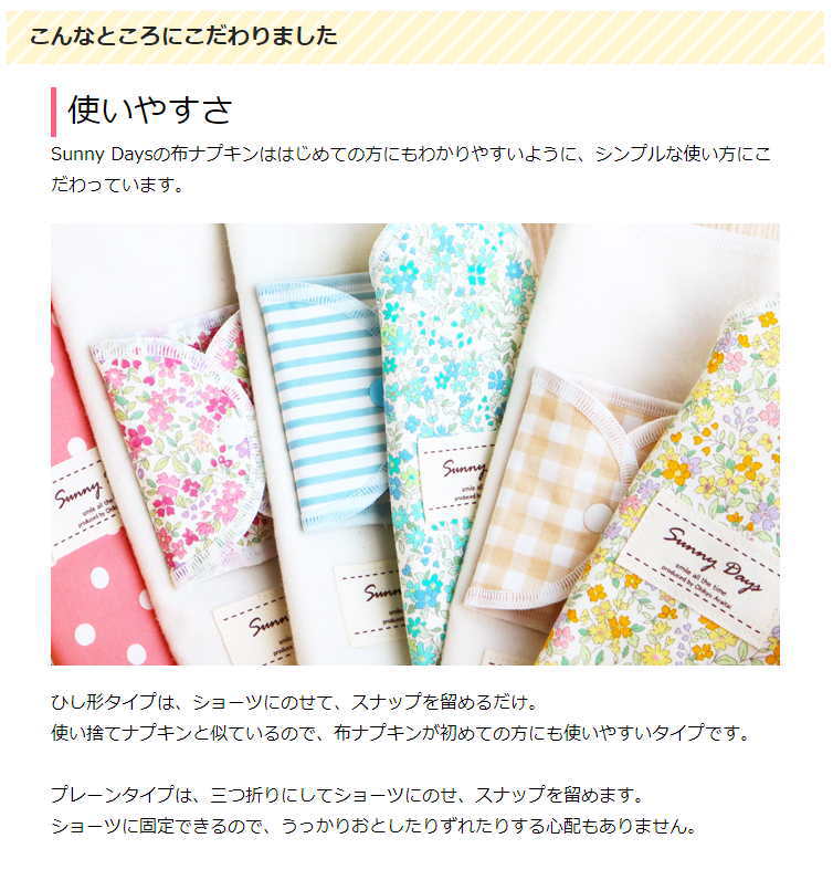 ・オリジナル布ナプキンブランド「SunnyDays」を展開しています。