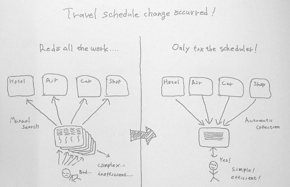 スケジューラー上での需要と供給のマッチングを考えた時、需要情報については主に一般消費者が登録する各自の行動予定が担うとして、これに応える供給情報の提供者がいなければ成立しません。