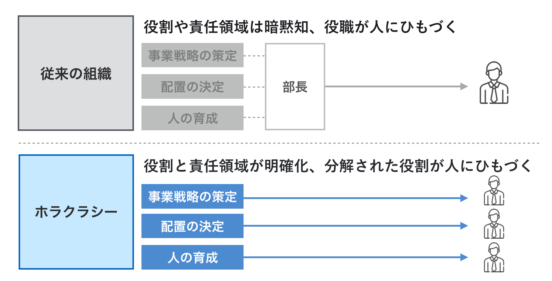 このように、変化が激しい世の中でイノベーションを起こすためには、指示命令で動く「中央集権型の組織」ではなく、適応力・柔軟性が高い「自律分散型の組織」が求められます。