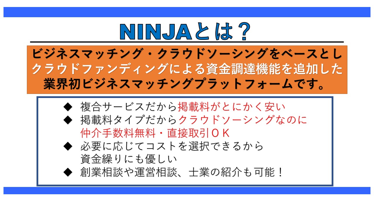- ベース事業として経理代行業や業務改善コンサルティングをベース事業とし、ビジネスマッチング×クラウドソーシング×クラウドファンディングを合わせた新しい創業支援プラットフォームの企画・運営を行っております。