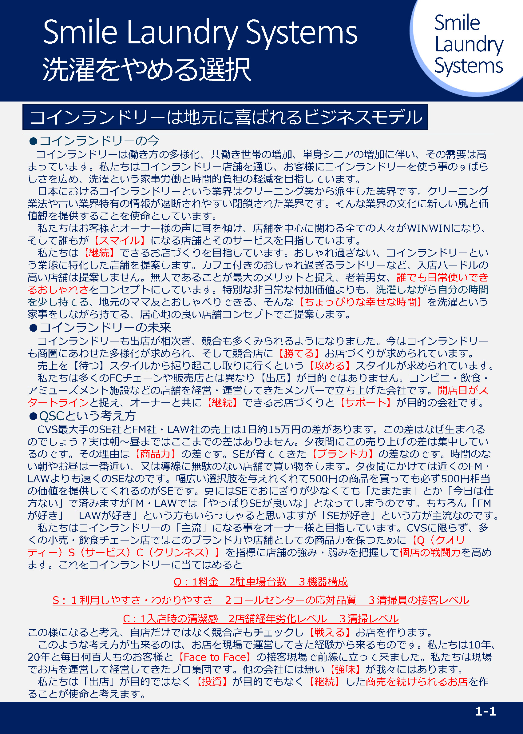 - ●【Smile Wash Laundry】の展開・運営 ●コンテナ型コインランドリー企画・販売 ●新築及びテナントのコインランドリープロデュース・設計・施工 ●既存コインランドリーのリニューアル・設計・施工 ●機器販売・搬入・設置 ●コインランドリー専門コールセンターの運営・業務委託 ●清掃・集金・現場対応の業務委託 ●コインランドリー販促キャンペーン支援・販促物の作成 ●遠隔売上管理・遠隔操作システムの販売 ●ランパス(ランドリーパスポート)サービスの運営