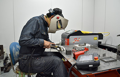 当社では最新のファイバーレーザー溶接機FLW-300MTを導入しております。高出力のファイバーレーザーをピンポイントで照射することで、歪みを極限まで抑えた、美しく強度の高い溶接製品のご提供が可能になりました。FLW-300MTによる溶接作業の自動化にともない、作業の効率化、スピードUPも実現、従来よりもハイクオリティーな製品を、早く、安く、お客様にお届けできるようになりました。