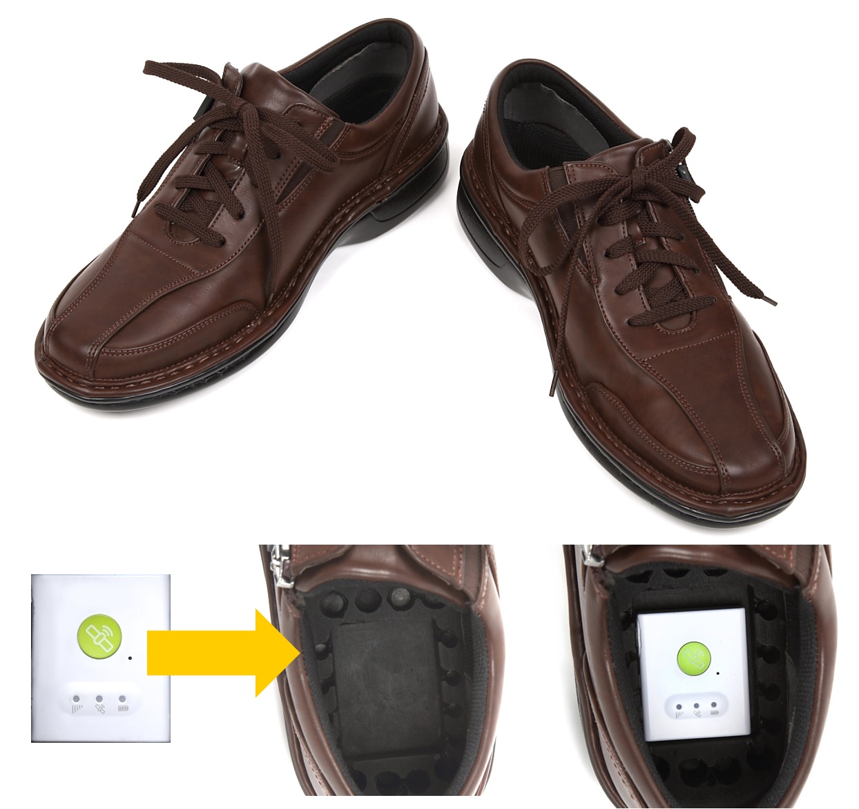 GPS機器やBeacon機器等を安心・安全・確実にお持ちいただける手法としての靴を提案。