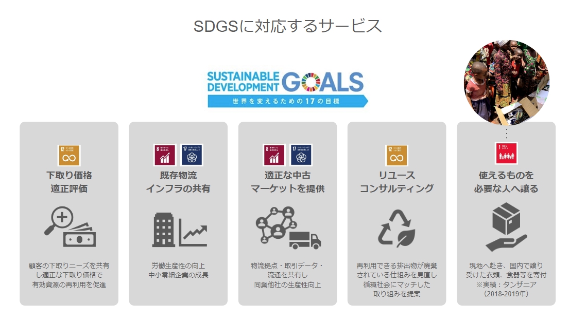 - 家電を中心に扱うネット型古物市場(リユース企業専用)を運営。 また、小売×物流×リユースの連携により新しい下取りスキームの構築に取り組んでおります。