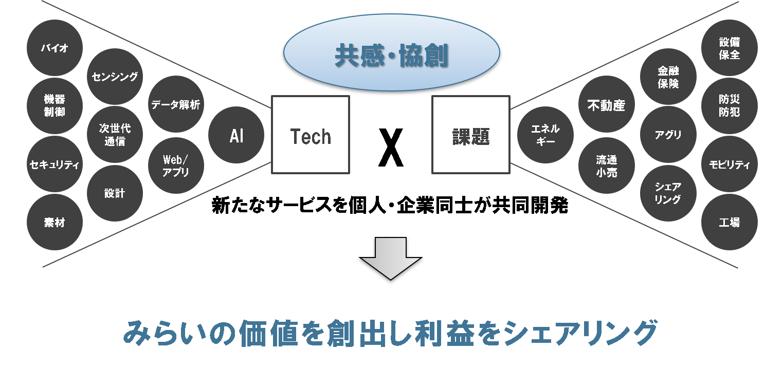 ・複数の企業やアカデミアが集まり協力し合いながら新しい事業を創生していく、日本型のオープンイノベーション推進に興味がある企業様のご連絡をお待ちしています