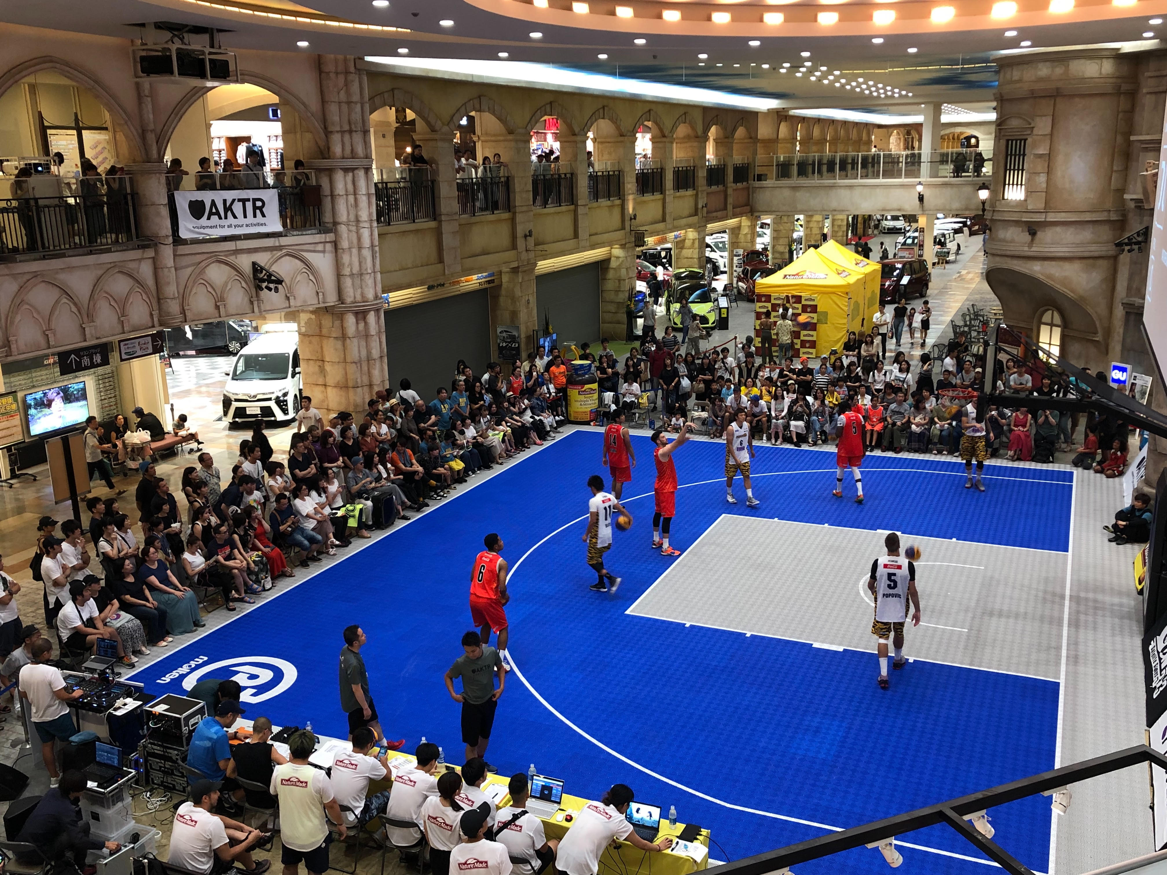 ショッピングモールや街のお祭り、フェスの空きスペースや駐車場にバスケットボールができるコートを1日だけのイベントでも出現させます。