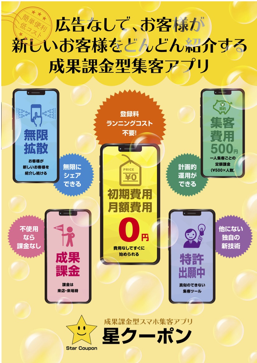 星クーポン:広告なしで、お客様自ら、新しいお客様を増やすSNS集客システム