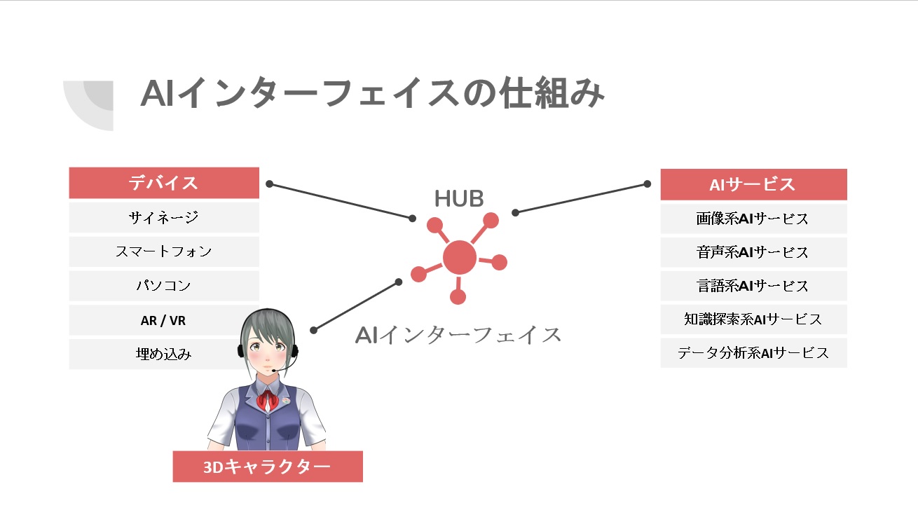 ・デジタルサイネージなどのデバイスで使用できるAI搭載の3Dキャラクターの開発。