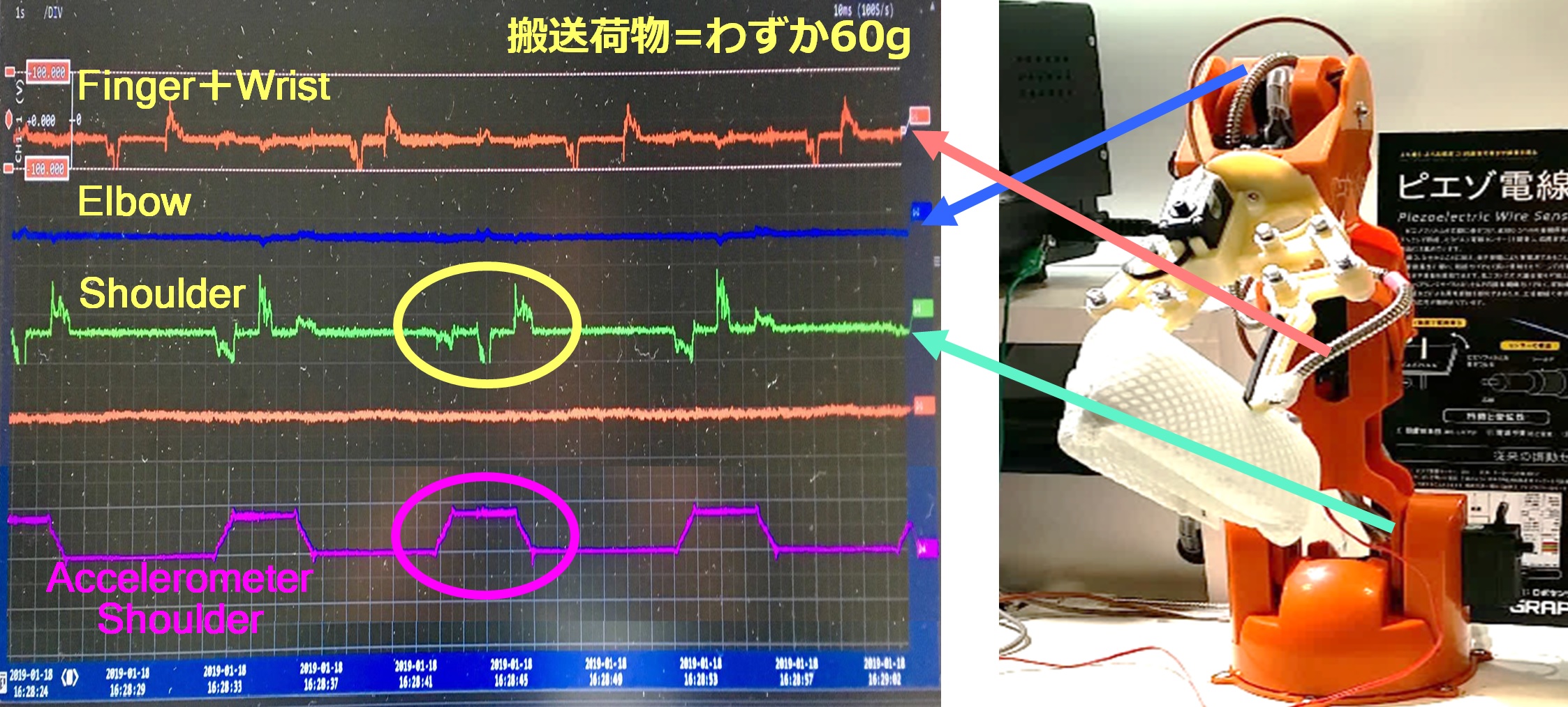 弊社「ピエゾ電線センサー」を活用し、様々なボットアームの動作センサーとして、ワークの把持ができているかどうかを確認できるロボットハンド用センサの開発を行っていきたいと考えています。また、ロボット動作の分析センサー、及び不具合発生予知、故障予知等の分析システムの開発を行っていきたいと考えています。