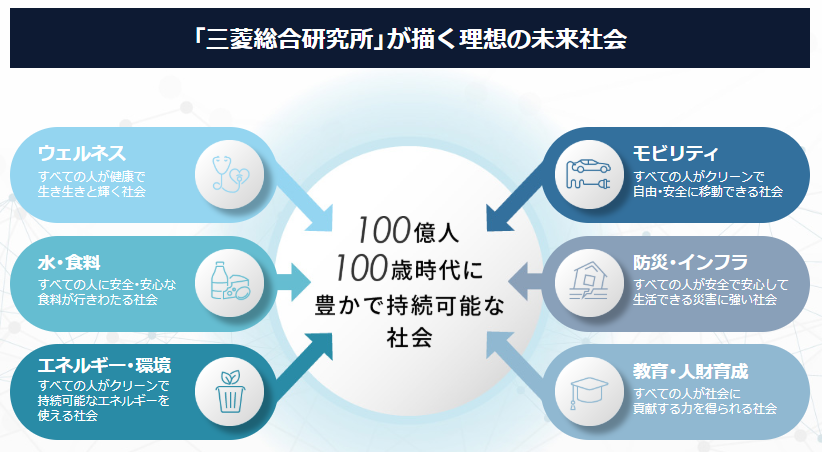 三菱総合研究所が描く理想の未来社会の以下6テーマに基づいた共創を目指します。
