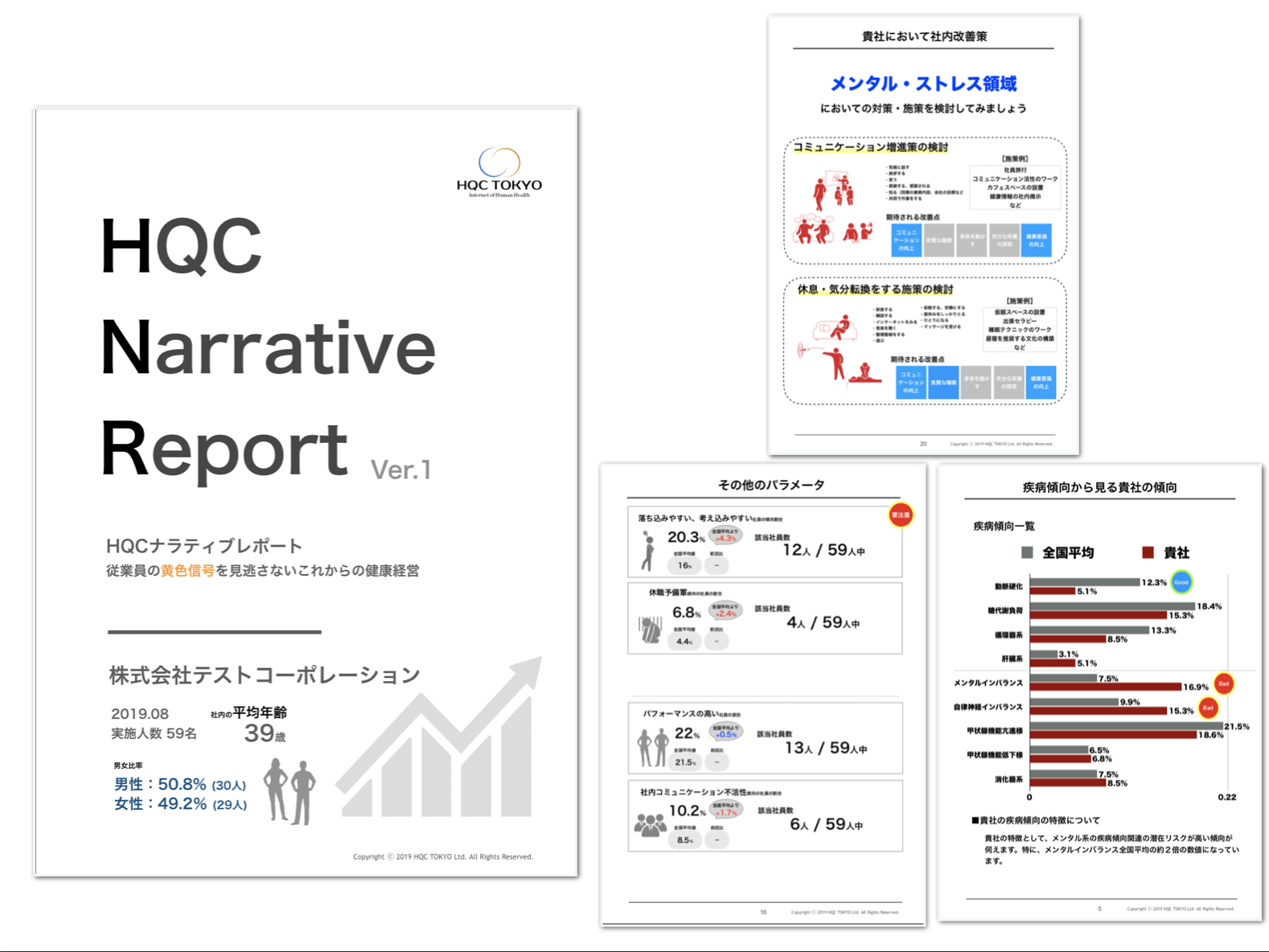 →企業や集団での健康潜在リスクを統計的に算出します。