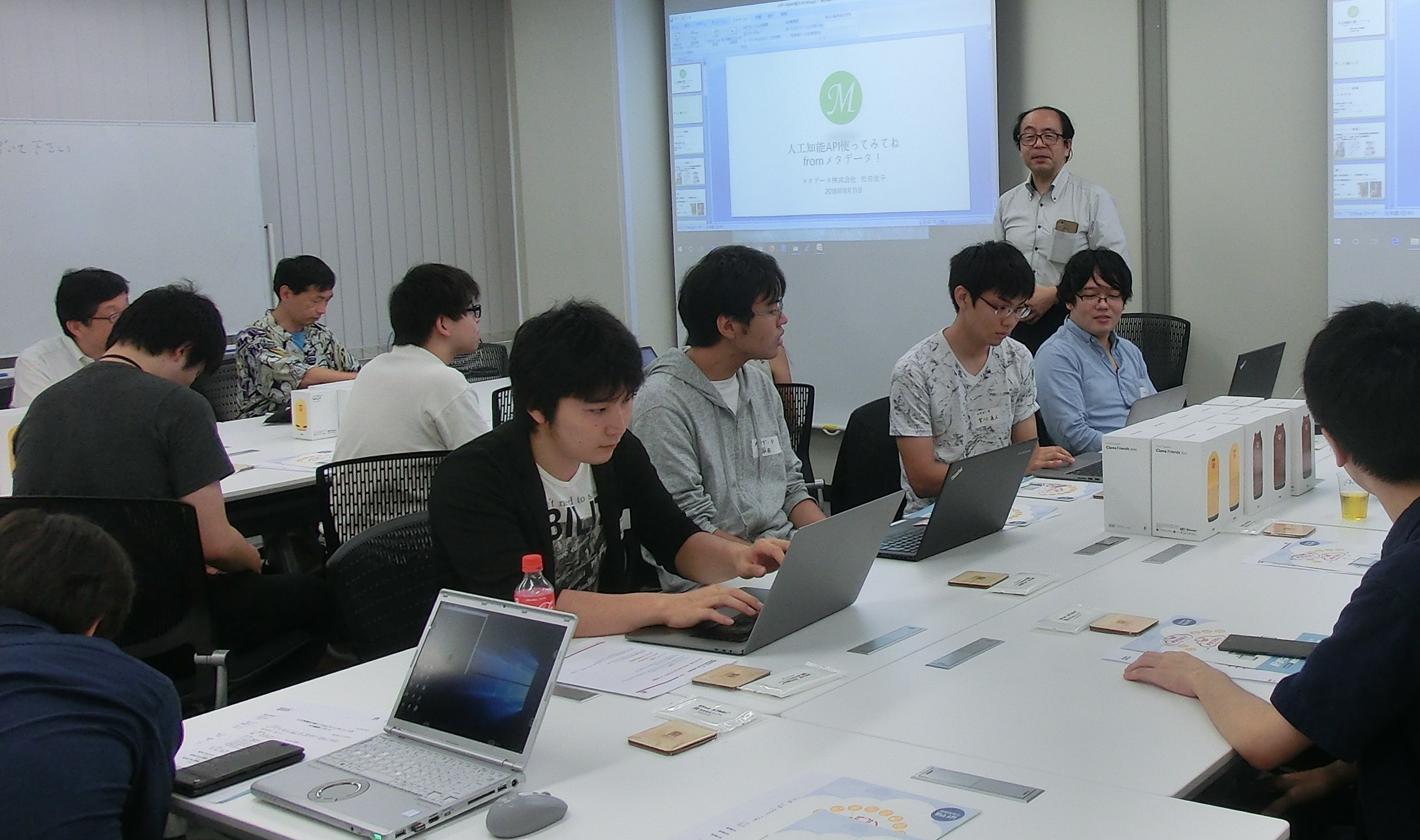 メタデータは人工知能APIを用いて、人と人のコミュニケーションを活発にする、人とモノ・情報・サービスとの接点を豊かにする、多くの人々から愛されるサービスの創出を目指しています。その第一歩として、メタデータ主催の人工知能APIを使った、ハッカソンなどを実施し、日々、アイディアを形にしております。人工知能の新しい利用方法を一緒に考えてくださる企業様、お待ちしております。