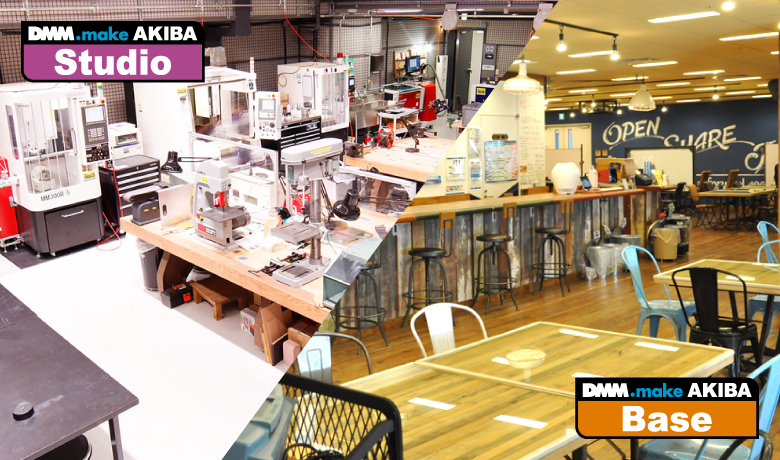 DMM.make AKIBAは、シェアオフィスやイベントスペースなど、24時間OPENのビジネスの拠点として利用できる「DMM.make AKIBA Base」とホンモノの機材でプロトタイピングを可能にする「DMM.make AKIBA Studio」で構成された、ハードウェア開発をトータルでサポートする総合型のモノづくり施設です。