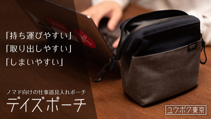 内容としては、ノマドワークをする方々のために、仕事を更に効率化させるステーショナリー、雑貨アイテムをリリースします。第一弾は、「ノマドワーク向け仕事道具入れポーチ」です。