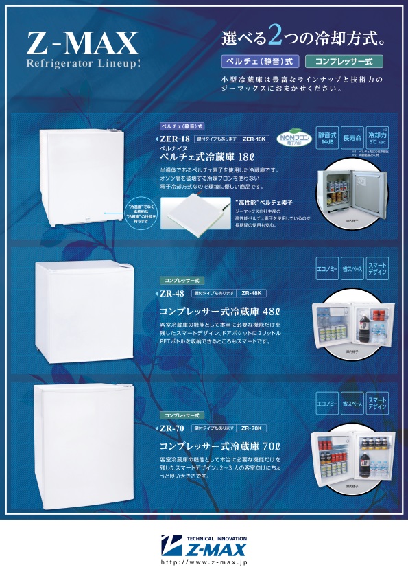 - 冷却装置であるペルチェ素子(開発、製造、販売)を扱うペルチェ事業部と、小型冷蔵庫・ワインセラー・ミルククーラーなど(開発、製造、販売、サポート)を扱う、特販部事業部にて構成されております。
