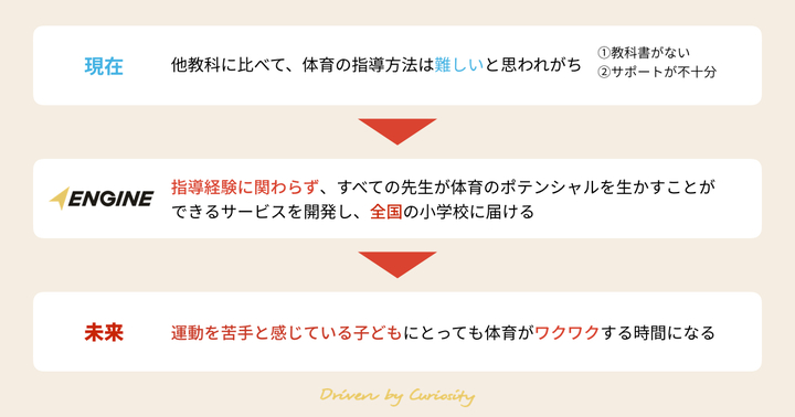 ENGINEはこの小学校体育の課題に正面から向き合い、指導経験に関わらず、すべての先生が自信を持って体育の指導を行えるためのサービスの開発を進めていきます。