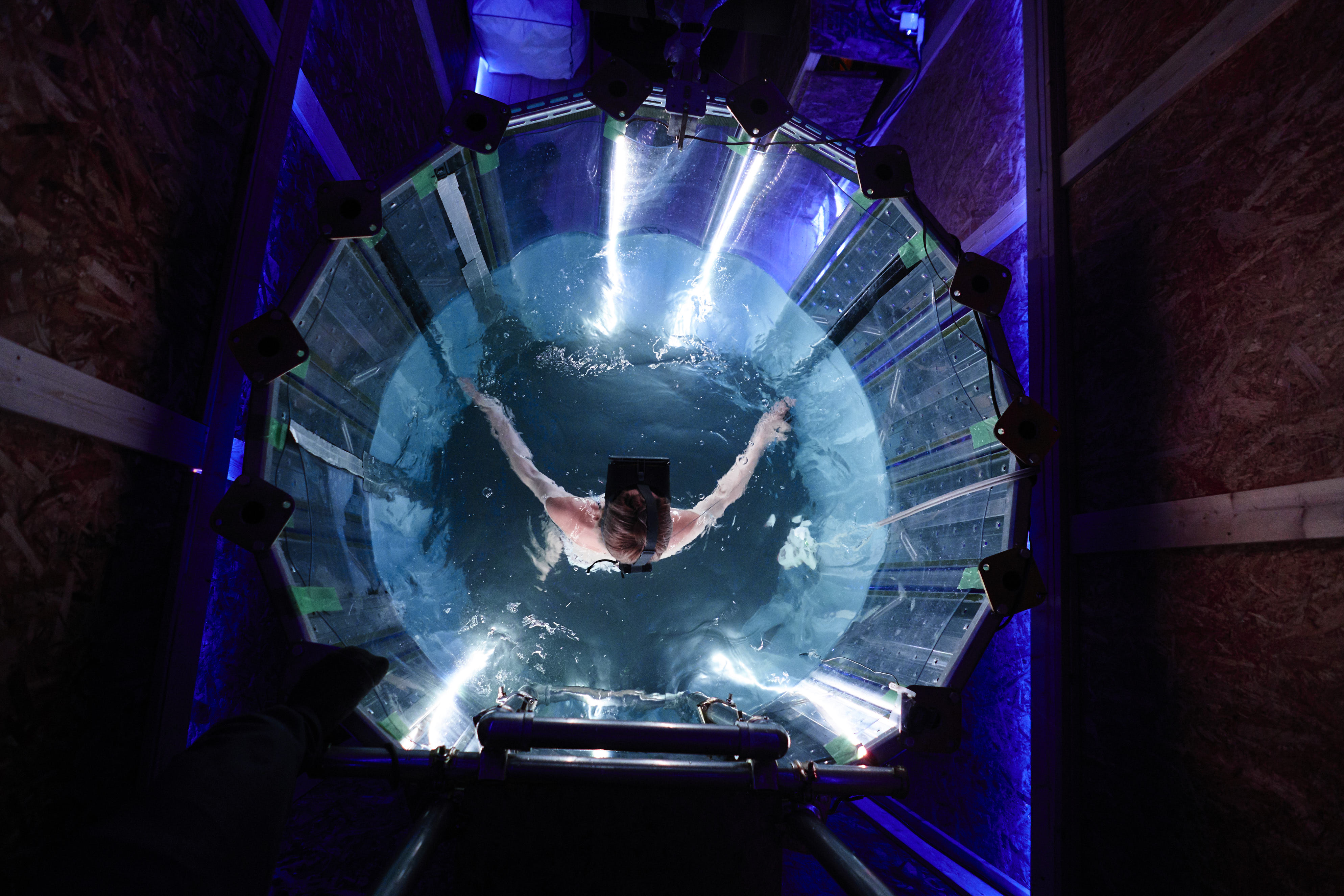 現在力を入れているのはプールVRで、顔は水上で、首から下が水に浸かった状態で、身体を動かして操作するゲームを開発しています。