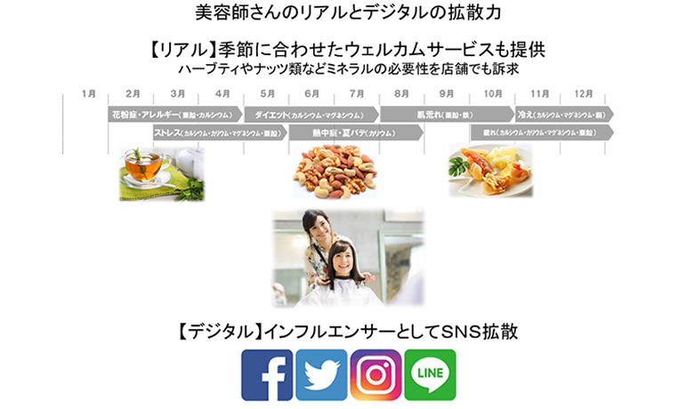 大きな特徴の一つに、カットした毛髪から体内ミネラル成分を分析し、会員に不足栄養素を提案するパーソナライズサービス「いこらぼ」があり、美容業界をウェルネスに導いてゆこうと考えております。